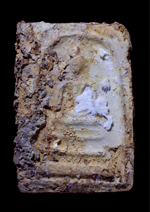 คราบน้ำว่าน/คราบรัก: ส่วนที่เป็นสีน้ำตาลเข้มหรือแดงเลือดหมู มักจะเป็นตัวประสานที่ทำให้พระติดกันแน่น เมื่อแยกออกจึงเห็นคราบเหล่านี้ฝังแน่นเป็นปื้นๆ