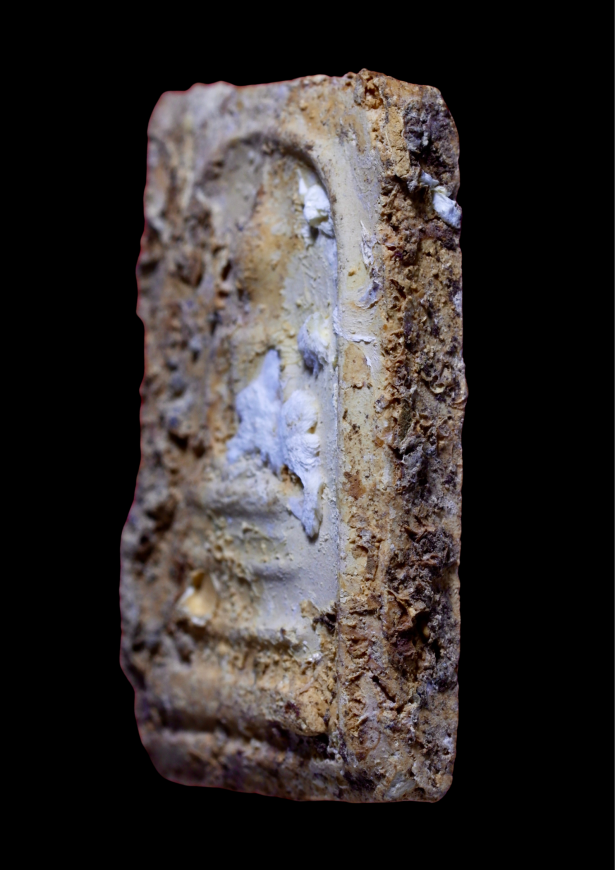 รอยเหนอะ/รอยปะทุ: พื้นผิวด้านหลังที่คุณเห็นว่าขรุขระ สีเข้มสลับอ่อน เกิดจากแรงดึงตอนแยกพระครับ เนื้อพระส่วนที่ "อ่อนกว่า" จะหลุดติดไปกับอีกองค์หนึ่ง ทำให้เกิดร่องรอยที่ดูเป็นธรรมชาติ ไม่เรียบเนียน